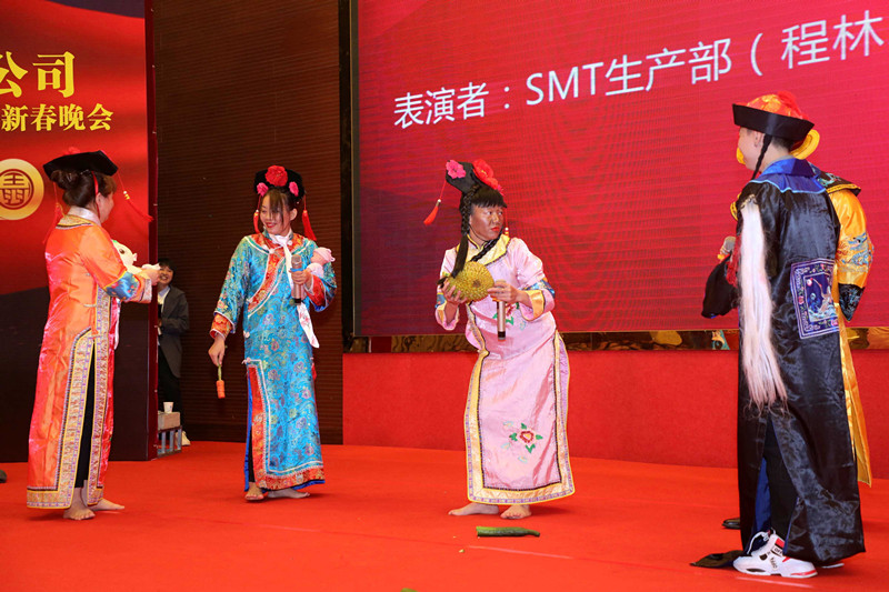 SMT生产部带来的小品《甄嬛传》上台伊始,便引来大家的捧腹大笑,夸张的造型,搞笑的台词,浮夸的表演都让人忍俊不禁,笑声不断。