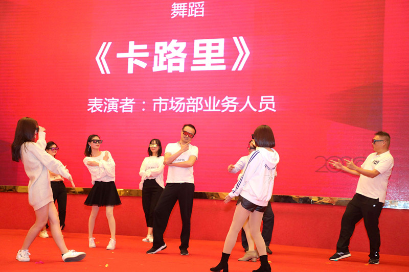 这在欢乐的氛围中,自然少不了我们激情洋溢,活力无限的市场部同事,他们带来了一曲动感欢乐的《卡路里》引爆全场,新潮的音乐,炫酷的舞蹈,2020年,奋斗吧,燃烧吧!